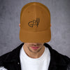 The crown of the hat has stiff fabric behind the front two panels making it structured and well-shaped.